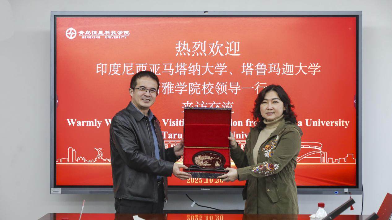 2025年10月30日,印度尼西亚马塔纳大学校长Melitina Tecoalu女士、塔鲁玛迦大学新雅学院院长Lanny Indrawati Oentoro女士率团抵达青岛恒星科技学院参观调研。校长助理史春猛、国际教育集团执行总裁陈启菁、产城学院唐德才教授及国际处人员陪同参观。