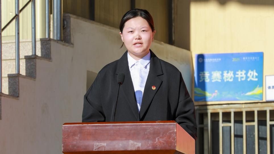 随后,学生代表邓宇涵发言。她以青春视角分享了对爱国与奋斗的理解,表达了新时代青年将以实际行动为校争光、为祖国奉献的坚定决心,展现出青年一代志存高远、脚踏实地的精神风貌,引发在场师生的强烈共鸣。