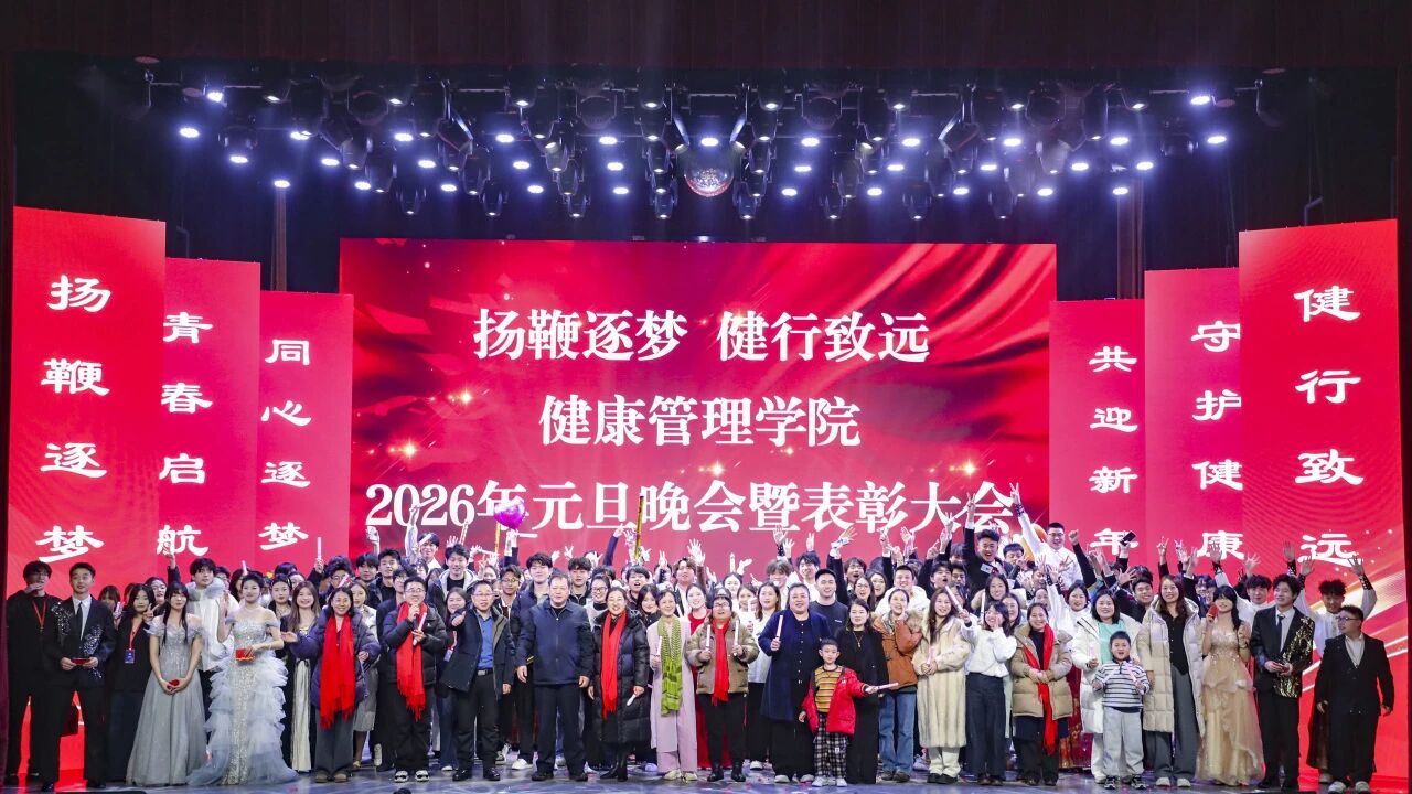 此次元旦晚会暨表彰大会,既是健康管理学院对2025年发展的回顾与总结,也是对2026年新征程的展望与开启。表彰先进的环节凝聚起全院奋进的力量,文艺表演则尽显青春风采,让大家在欢声笑语中凝聚共识、增进情谊。未来,健康管理学院将继续秉持“扬鞭逐梦,健行致远”的信念,在人才培养、学科建设的道路上稳步前行,书写学院发展的崭新篇章。
