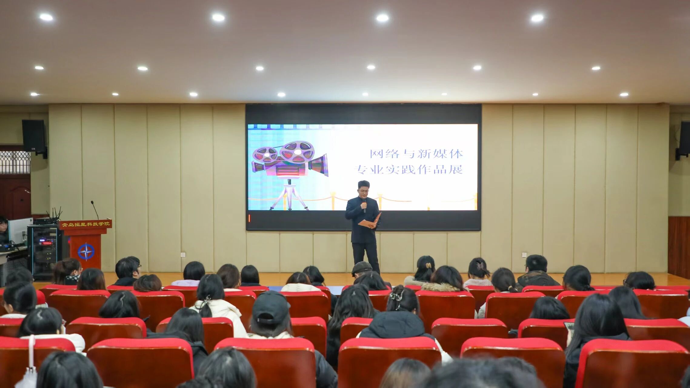 12月23日,我院网络与新媒体专业本学期实践作品展在A8-110顺利举行。展览聚焦短视频创作、公众号运营、直播实践三大板块,通过作品展现出网络与新媒体专业教学的实践成效与学生的创意活力。我院院长邱秉常,影视学院行业院长刘晓宙等领导出席,网络与新媒体专业全体师生共同参与。