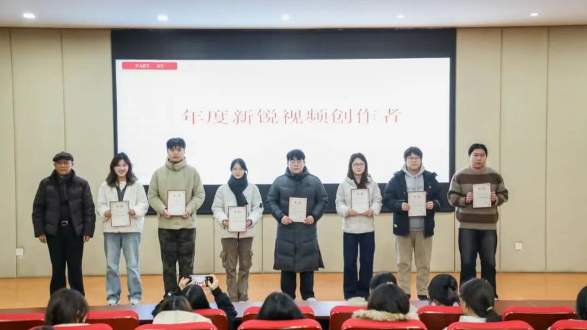 此外,还对本学期在专业实践中表现优异的学生进行了集中表彰,邱院长、刘院长以及教研室老师依次为学生颁发“年度新锐视频创作者”“金牌编辑”“年度金牌主播”“双创之星”等多个荣誉称号,激励着每一位同学在专业道路上持续探索、不断突破。