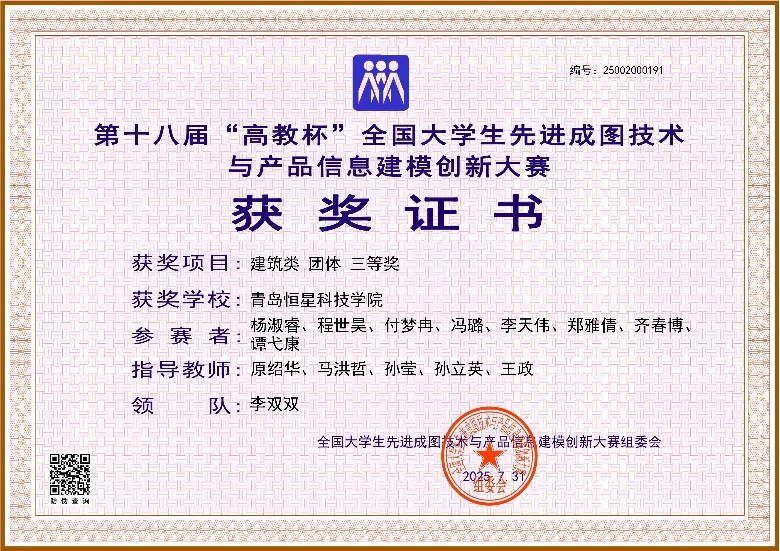 近日,第十八届“高教杯”全国大学生先进成图技术与产品信息建模创新大赛(建筑类)国赛成绩在主办方网站公示结束。本赛事于2018年入选全国普通高校学科竞赛排行榜,已成功举办17届,被誉为“图学界奥林匹克”。建筑工程学院在此次赛事中共斩获国奖11项,包括团队三等奖1项,个人二等奖2项、三等奖3项,优秀指导教师5项。此前,我院学子在省赛中成绩斐然,共斩获省级一等奖14项、二等奖32项、三等奖30项,比去年同期增长347%,获奖总数创历史新高,展示出建筑工程学院在人才培养、实践教学与创新能力建设等方面的卓越实力。