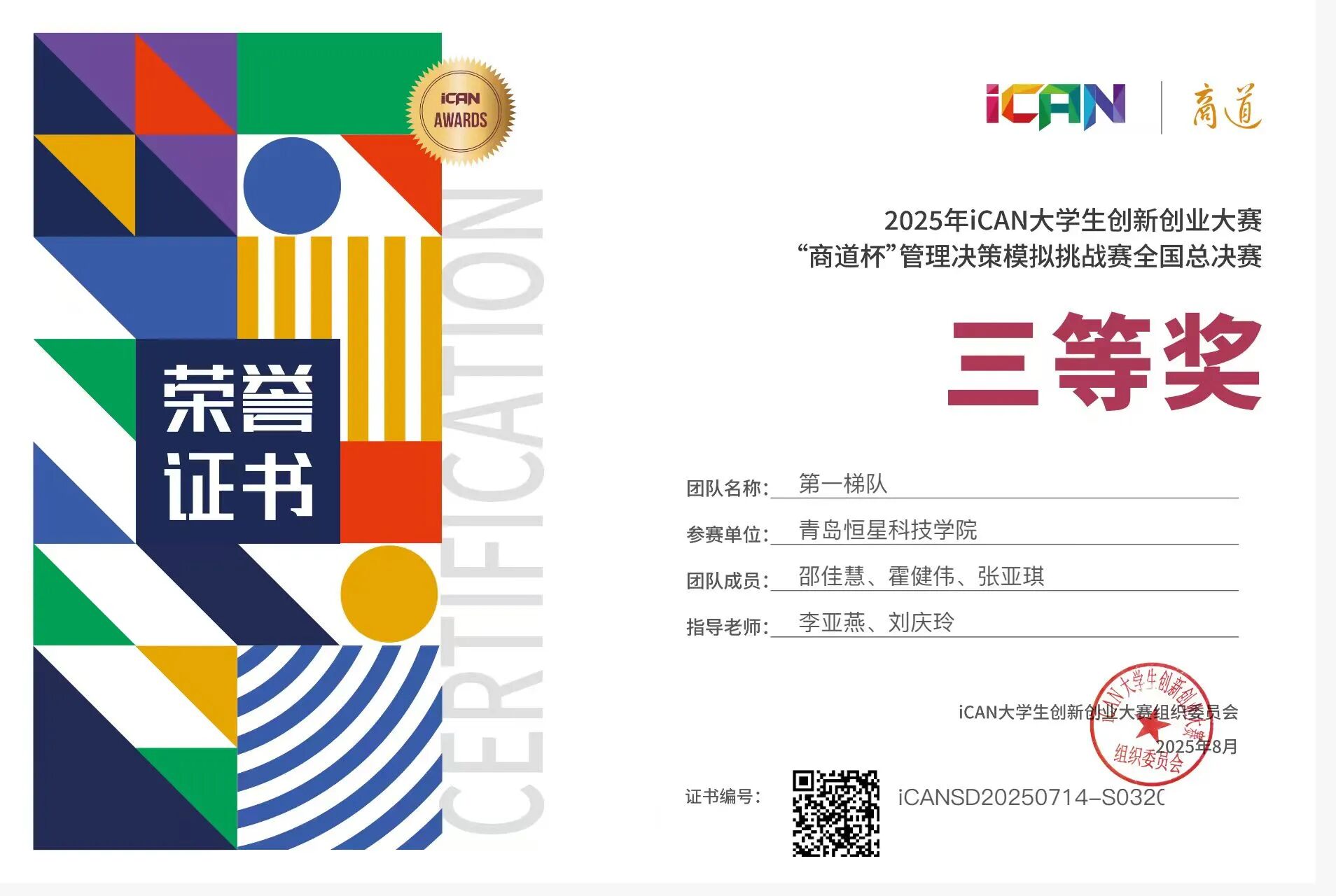 近日,2025 年 iCAN 大学生创新创业大赛“商道杯”管理决策模拟挑战赛和 “精创杯” 全国数字经济决策创新挑战赛全国总决赛获奖名单已公布。产城融合学院师生团队凭借扎实的专业功底、创新的决策思维与高效的团队协作,在全国数千支参赛队伍中脱颖而出,分别斩获一项国家级二等奖、四项国家三等奖,充分展现了我院在金融和数字经济领域人才培养的丰硕成果与师生锐意进取的精神风貌。