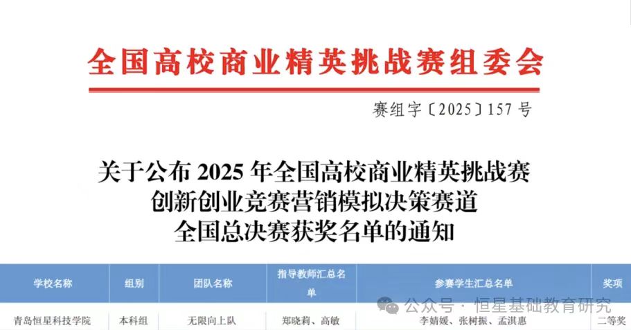 热烈祝贺我院学子分别在2025年全国高校商业精英挑战赛营销模拟决策赛道和创新创业竞赛创业计划赛道全国总决赛中奋勇争先,凭借过硬实力斩获二、三等奖,为学院争光添彩!