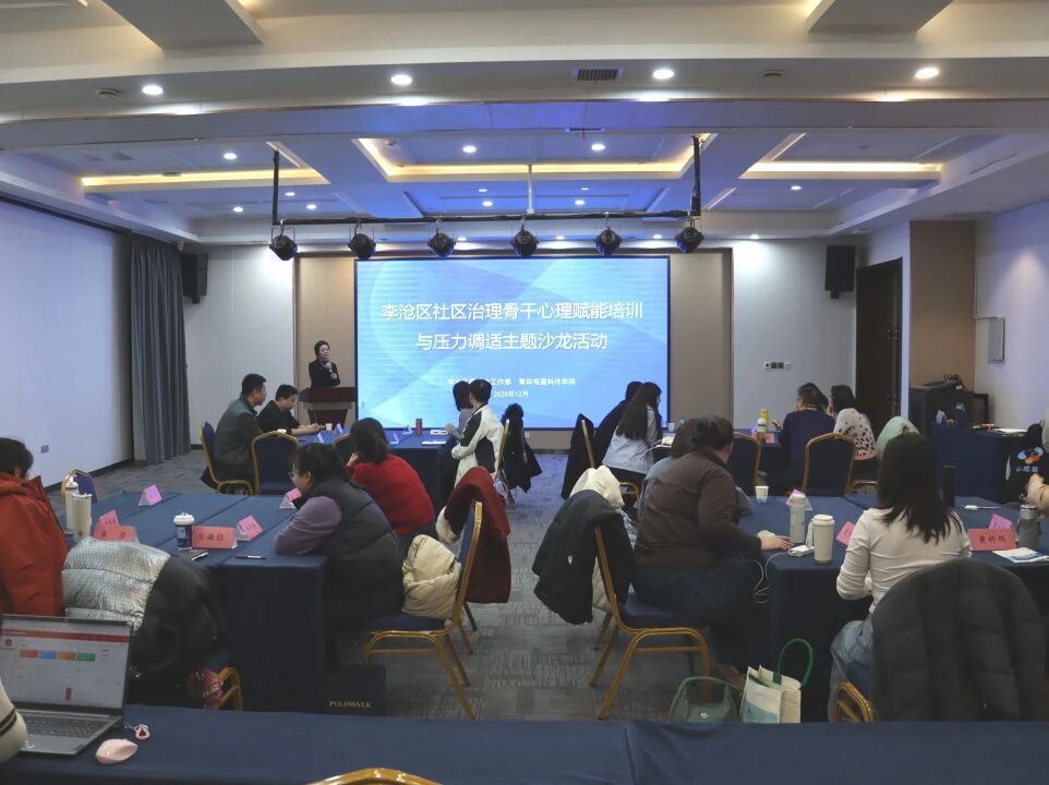 12月12日,由李沧区委社会工作部主办、青岛恒星科技学院承办的社区治理骨干心理赋能与压力调适主题沙龙,在青岛恒星科技学院恒星国际会议中心顺利开展。本次沙龙以“从心出发·聚力同行”为主题,提升社区治理带头人的心理抗压能力,为全区25位街道社会事务办负责人及社区治理业务骨干,打造了一场兼具专业深度与实践温度的赋能活动。