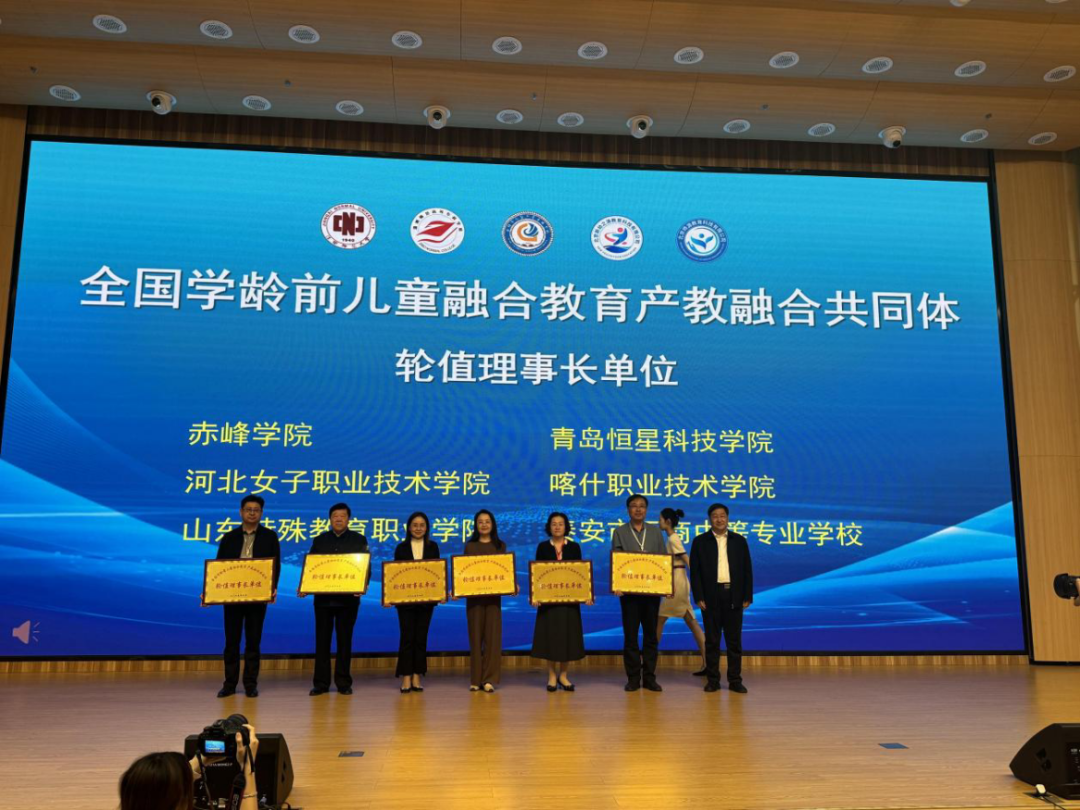4月25-26日,全国学龄前儿童融合教育产教融合共同体成立大会暨全国婴幼儿保育与早期教育产教融合共同体年会在山东淄博举行。我校被选举为轮值理事长单位,校专咨委副校级专家王冰教授担任轮值理事长,并接受大会授牌。