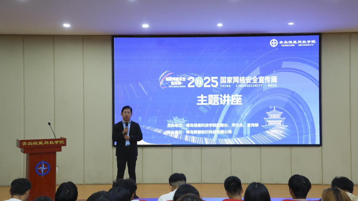 9月19日,由学校数智办、学生处、宣传部联合主办,青岛智御安行科技有限公司协办的2025年网络安全周主题讲座在A8教学楼110教室举行。