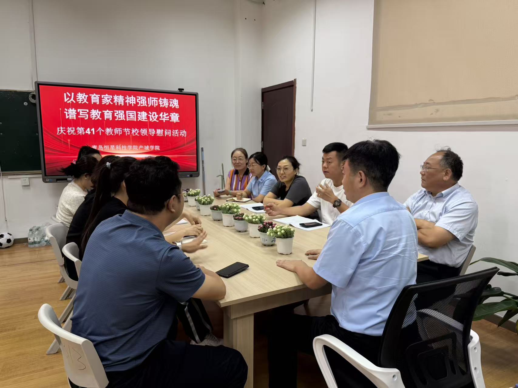 在第41个教师节来临之际,学校党政领导班子成员,深入各二级学院和联系单位,集中对一线教师进行走访慰问,并通过他们向全体教职员工致以节日的问候与祝福。