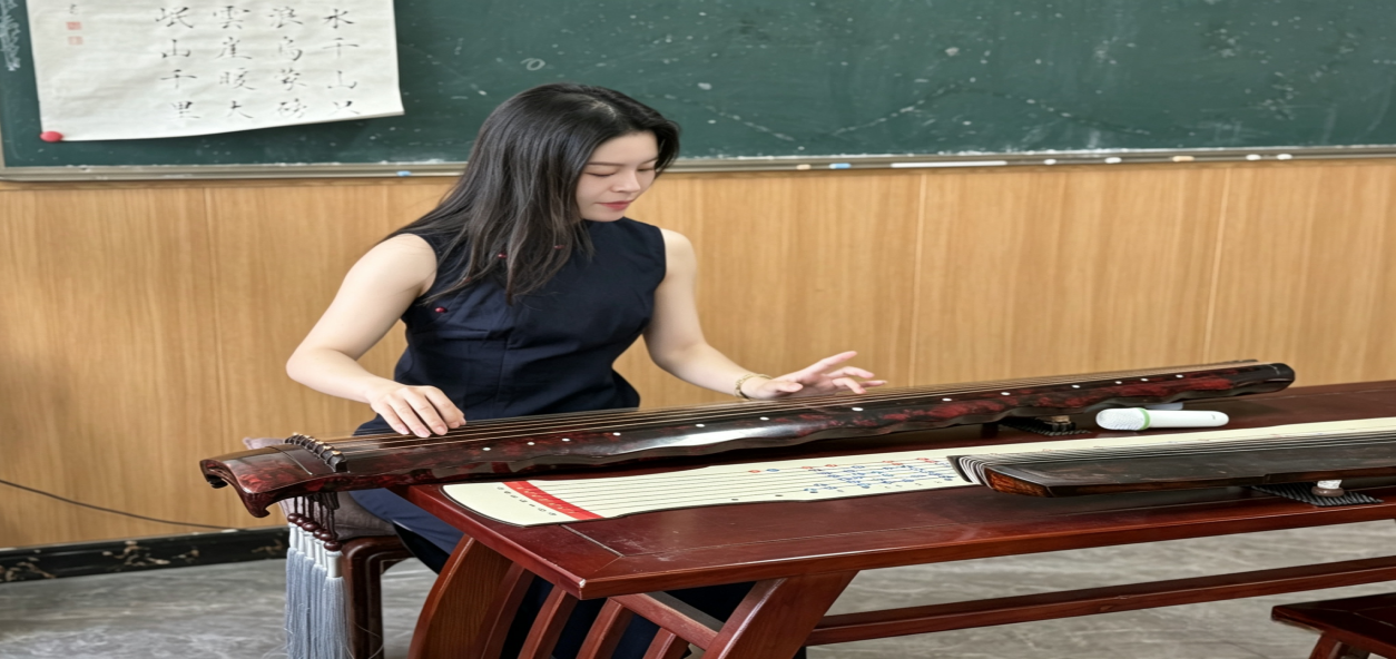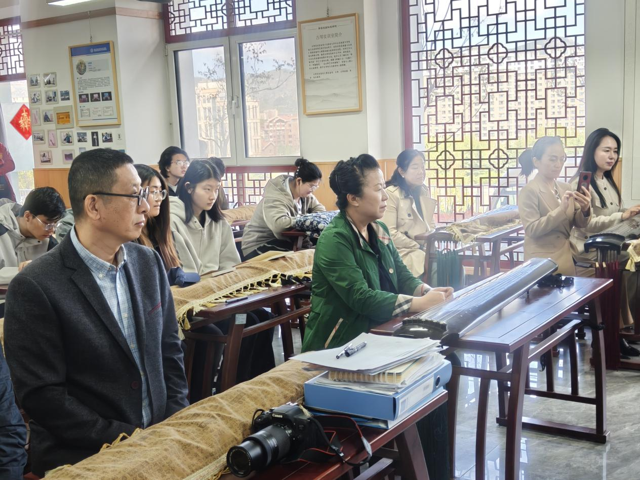 学校建设120平方米标准化古琴传习室,配备教学用琴、琴谱文献、演出设备等,面向全校开设《古琴》《古琴艺术鉴赏》等5门系列课程,其中《古琴艺术鉴赏》入选“山东省高校在线开放课程”,上线多平台惠及全国近万名学生。2021年成立的“七弦古琴社团”,现已发展社员近400人,获评校级“五星级社团”,累计开展雅集、展演、体验活动170余场,大批学生通过古琴等级考试,在各级赛事中屡获佳绩。依托高校科研与双创平台,成功申报省级艺术课题,以学术与创新双轮驱动,推动非遗高质量传承。