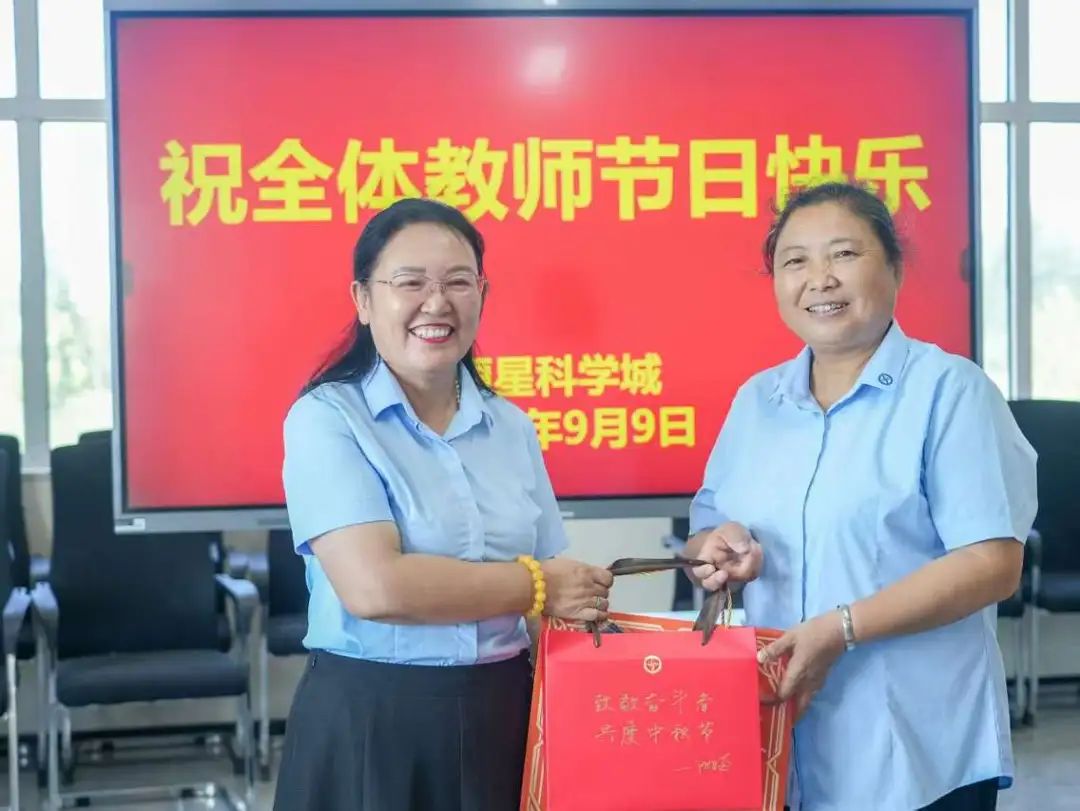 “老师们辛苦了!”这简单却深情的话语,不仅是对老师们日复一日、年复一年无私奉献的肯定,更是对他们用知识的光芒照亮学生前行之路的崇高敬意。学校领导亲手送上精心准备的节日礼物,每一份都承载着对老师们辛勤付出的感激与认可。