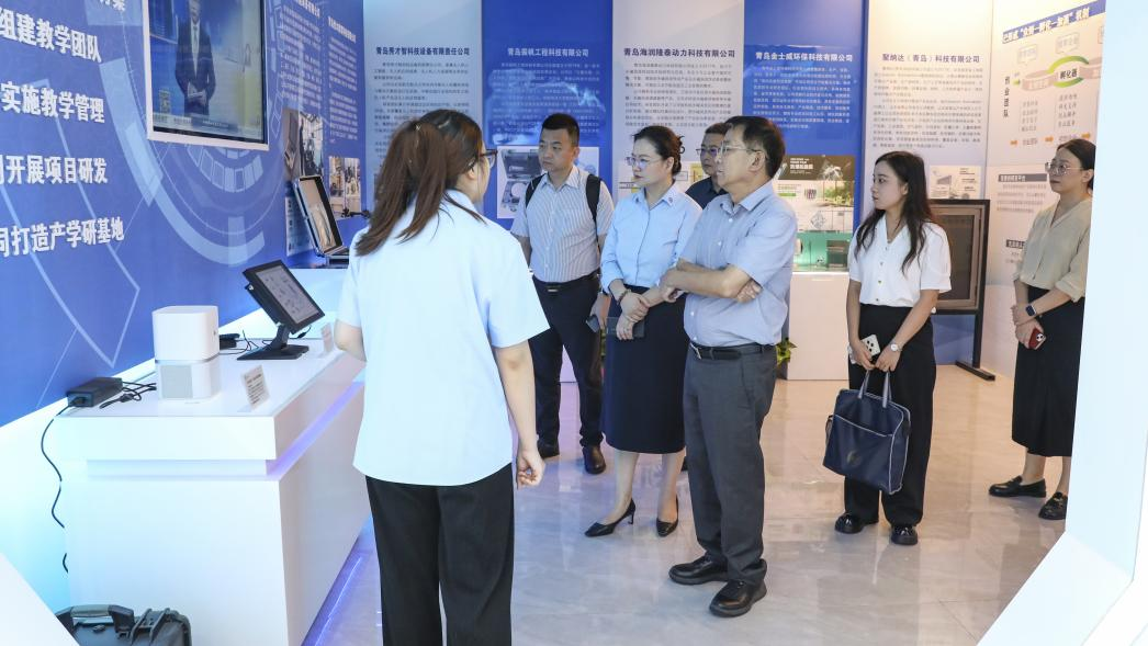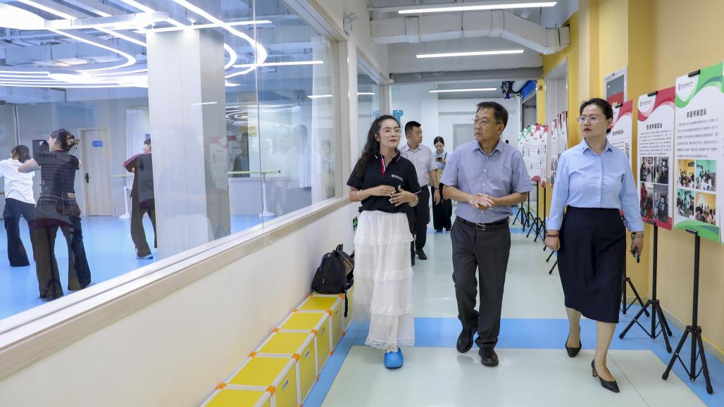 在赵晶晶副校长等人的陪同下,调研组先后参观了融媒体中心、未来儿童成长中心与大学生就业创业赋能中心。融媒体中心先进的录制与演播设备给嘉宾留下了深刻印象;未来儿童成长中心的AI早教评测系统和大学生就业创业赋能中心的跨境电商等国家级大创项目获得王胜刚理事长一行的高度评价,称赞我校“校企协同、国际接轨的育人场景鲜活落地”。
