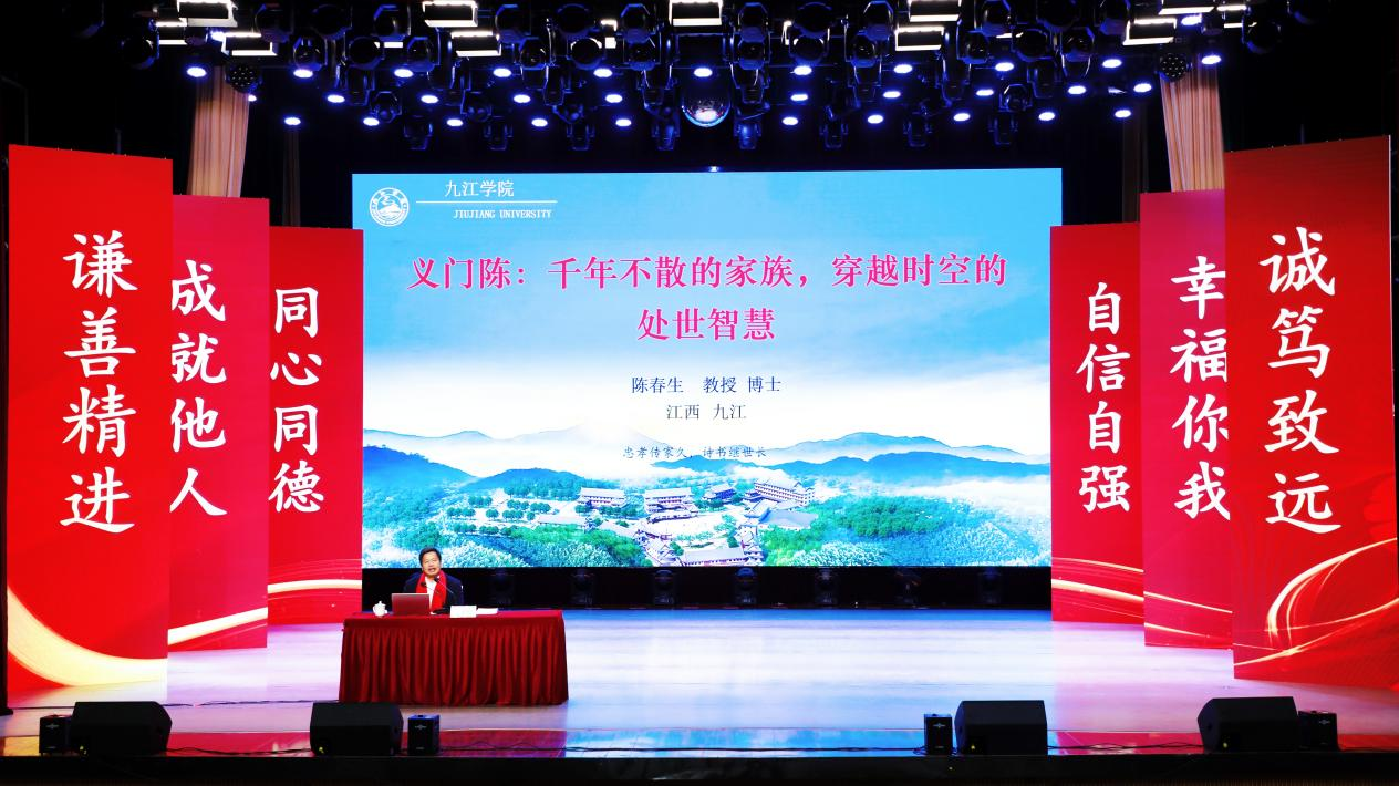 江西省政府参事陈春生教授带来《义门陈:千年不散的家族,穿越时空的处世智慧》主题分享,深度解码“天下第一家”合族而居332年、聚而不散的文化密码。他从处世之道切入,系统阐释“以义立心、制度治家、谦和忍让、耕读勤俭”四大核心要义,剖析义门陈分庄天下、散而不乱的独特格局。其凝练的“忠孝传家,勤俭为本,谦和处世,道义立身”十六字箴言,为恒星师生修身齐家、立德树人、团队共治提供了厚重的传统文化支撑与实践遵循。