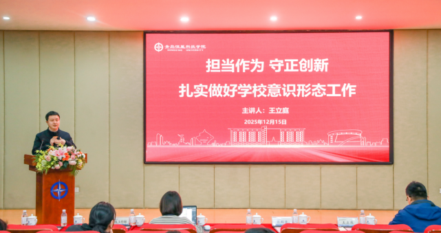 马克思主义学院习近平新时代中国特色社会主义思想概论教研室主任朱宏伟老师以《在接续奋斗中谱写中国式现代化新篇章——深入学习贯彻党的二十届四中全会精神》为题对党的二十届四中全会精神进行专题阐释。健康管理学院心理健康教研室主任梁园以《高校心理健康工作与思想政治教育融合实践》为题系统阐述高校心理健康工作与思想政治教育在育人目标上的内在联系与协同路径。党委副书记、副校长王立庭以《担当作为 守正创新 扎实做好学校意识形态工作》为题结合具体案例对筑牢学校意识形态防线做出了总体部署。