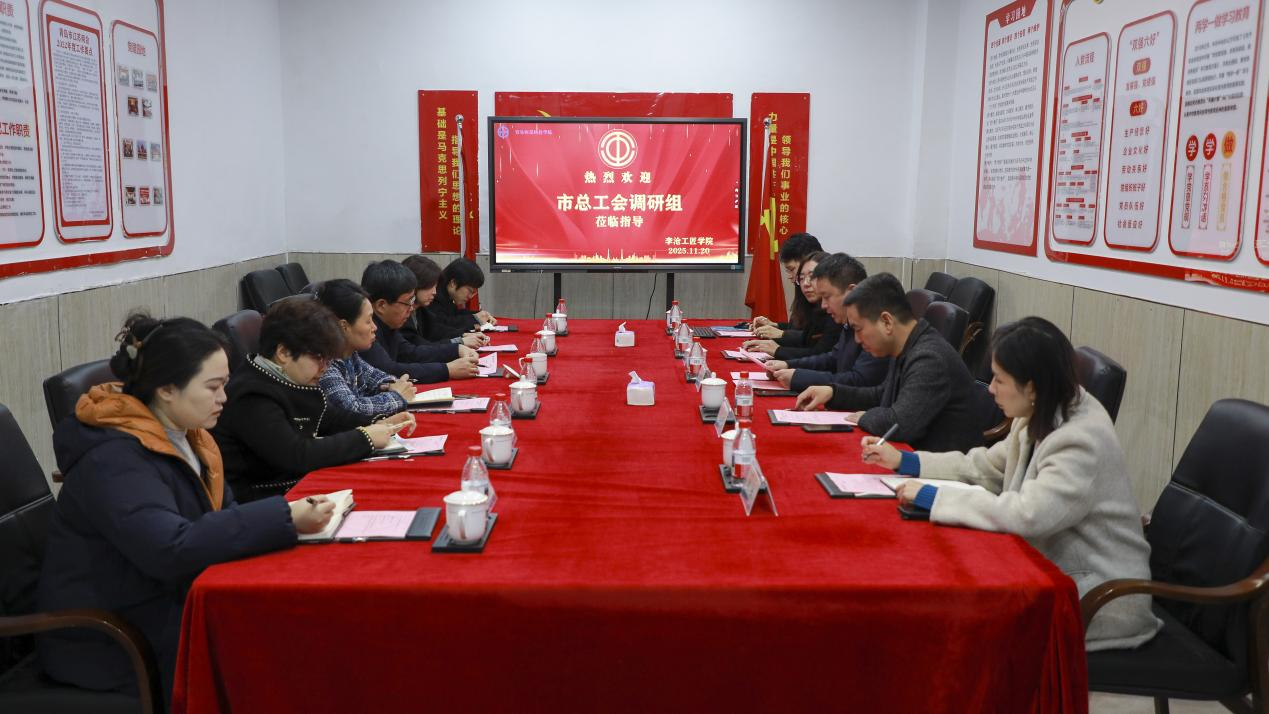 11月20日上午,青岛市总工会调研组领导莅临我校调研指导。青岛市总工会党组成员、副主席孙振超一行来校调研,我校党委副书记、工会主席、副校长王立庭,校长助理、办公室主任刘卓,党委办公室主任、工会副主席施玉萍,继续教育学院副院长李娜等陪同调研。