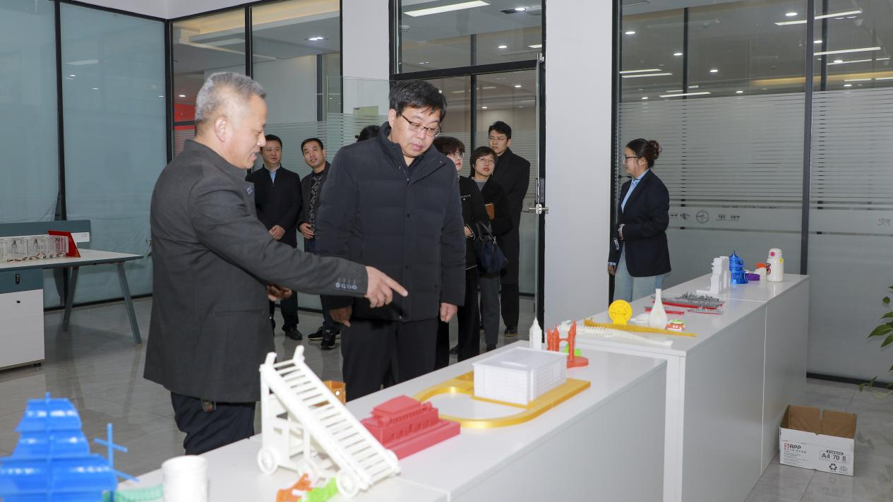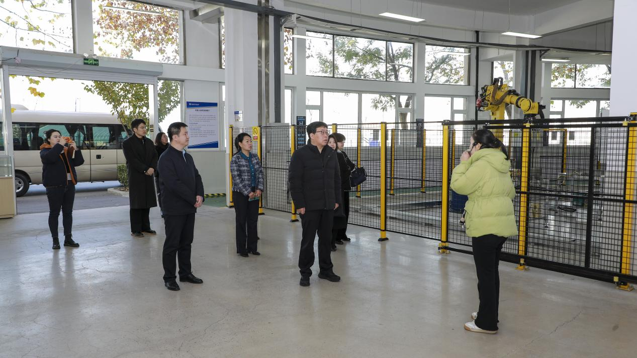 调研组实地考察了校内实训基地机器人中心、智岭大学双创基地、李沧工匠学院等教学场地,并于双创基地党建工作室展开调研会座谈。