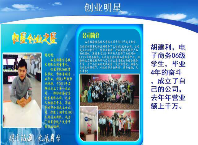 万众创新时代,电商创造辉煌,伴随着我国移动互联网高速发展的时代背景下,电子商务已逐渐成为了迄今为止最为重要的领域,相信电商学院依附着恒星这个平台以及我们特色的教学模式之下会更加快速的发展壮大,创造属于我们的电商时代!