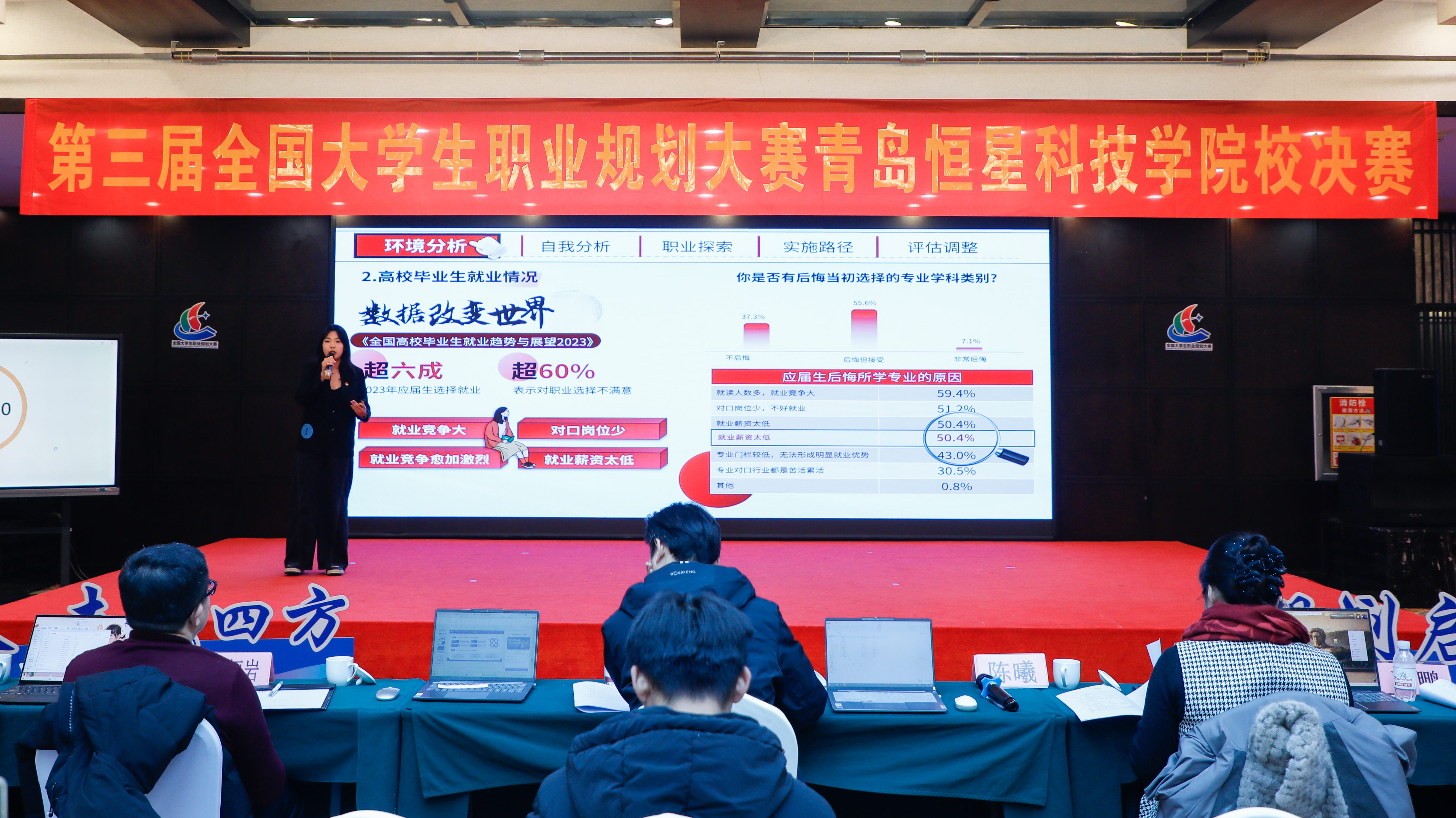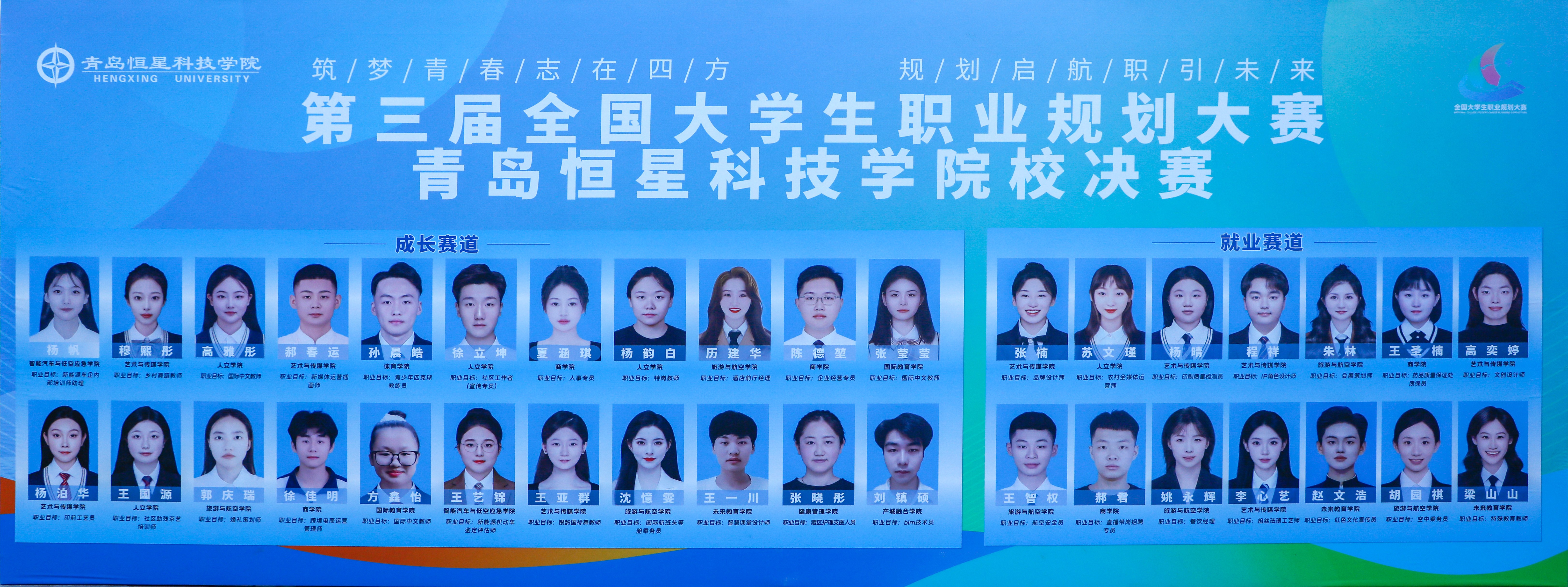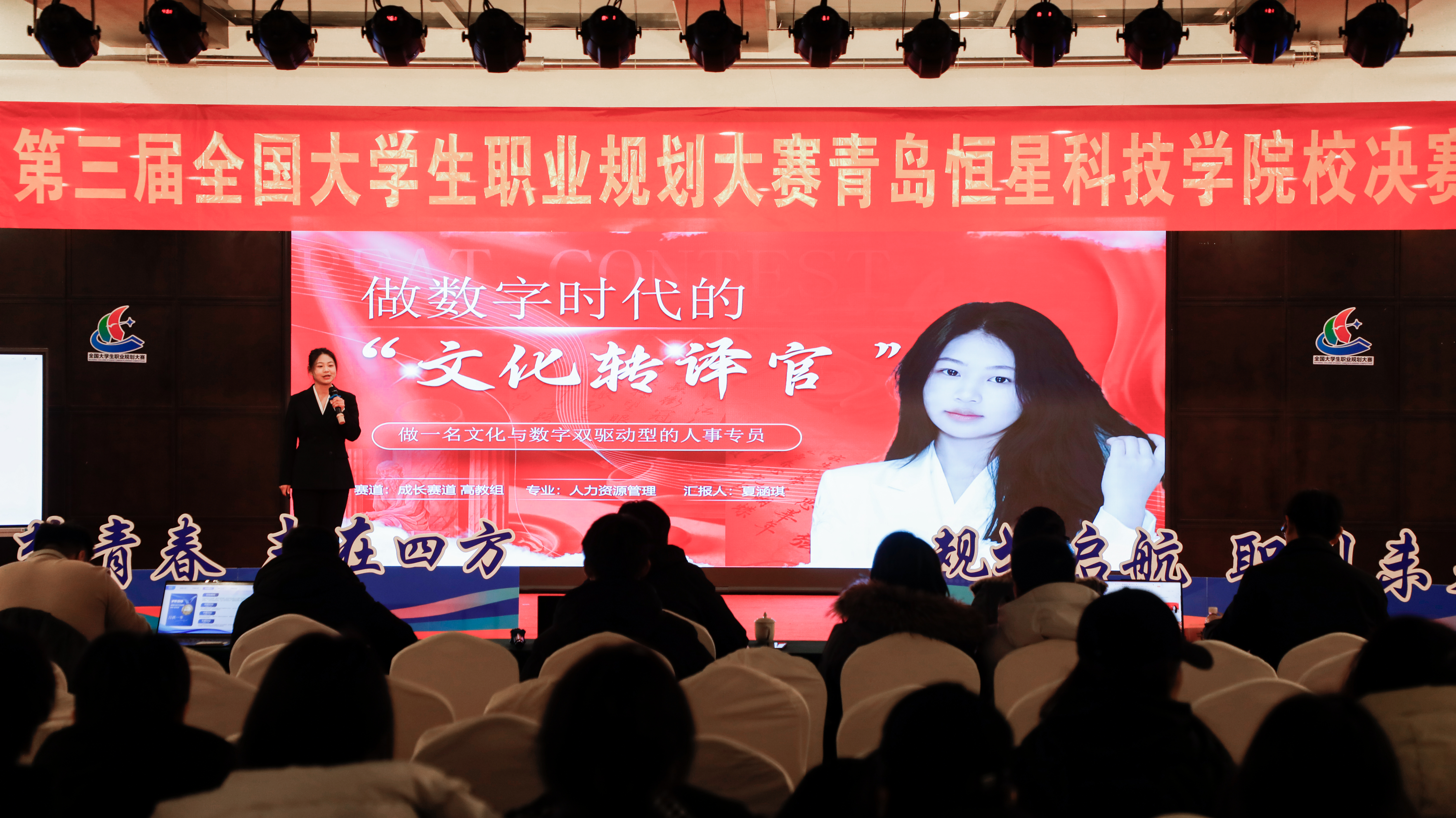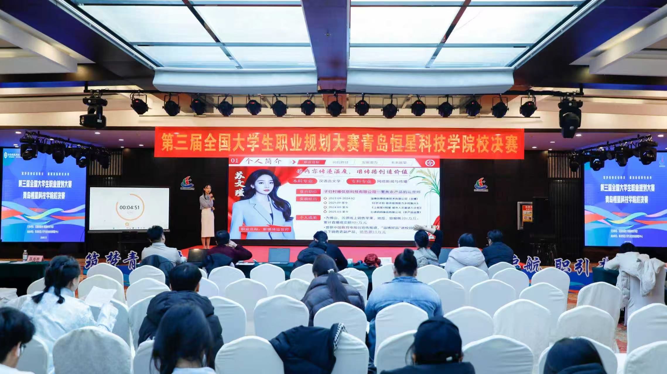 本次大赛由青岛恒星科技学院实践创新处(创新创业学院)主办,青岛恒星大学生就业创业赋能中心承办。以“筑梦青春志在四方,规划启航职引未来”为核心主题,设置成长与就业两个赛道,面向全校学子广发邀约。自大赛启动以来,赛事得到热烈响应,经过多轮选拔,36名优秀选手脱颖而出,站上校决赛的巅峰舞台,展开实力对决。