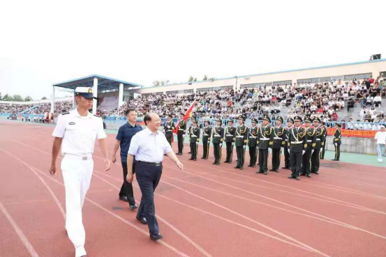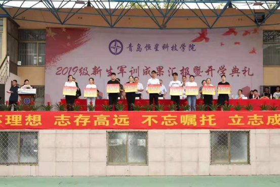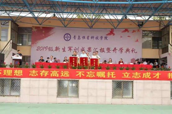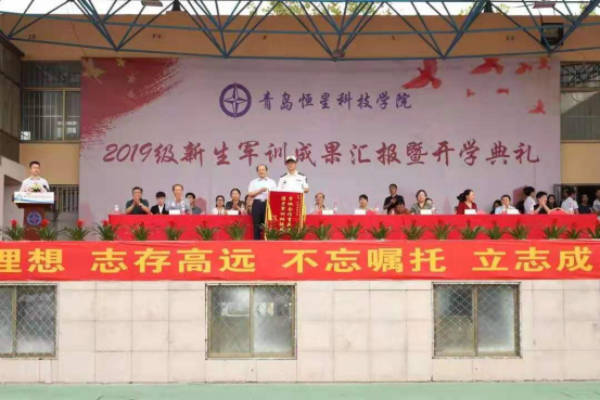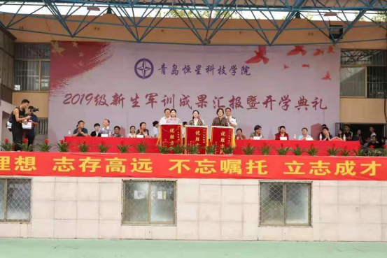 9月3日下午,青岛恒星科技学院2019年军训成果汇报暨开学典礼在恒星体育场隆重举行。青岛恒星科技学院董事长、校长陈昌金博士,山东省教育厅督导专员、党建联络员杨晓明书记,海军潜艇学院三大队政治委员祝子民上校,执行校长王春娟教授,学术校长徐爱民教授,学工校长陈杰校长以及学院相关领导参加了本次活动。本次会议由党委副书记王立庭主持。