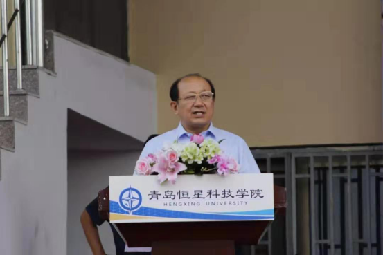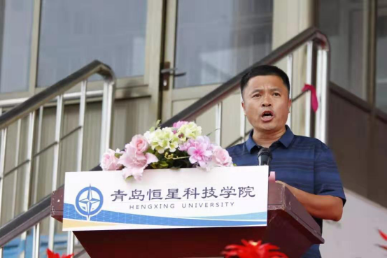 青岛恒星科技学院董事长、校长陈昌金博士在开学典礼上讲话。代表青岛恒星学院全校师生对2019级新同学的到来表示热烈的欢迎,对在军训工作中付出辛苦努力的全体教官、助教表示衷心的感谢。他在致辞中提到恒星人“成就他人、幸福你我”的教育初心不改,“脚踏实地、敢为人先”的精神不减。同时,也对新一届的恒星学子提出了“立大志、重奋斗”“长本事、重见识”“严标准、重约束”“树品行、重操守”“强体魄、重身心”的几点要求。青年者,国之魂也,生逢其时,重任在肩。他希望同学们能够励志恒星成大器,热血青春向未来,砥砺前行,矢志奋斗。