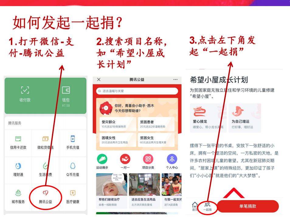 2. 腾讯公益“希望小屋一对一”资助项目捐赠