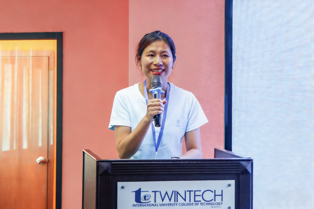 我校领队教师代表张秀婷上台发言,详细介绍了本次研学营的教学安排和预期目标。此次课程设计注重理论联系实际,既涵盖商业管理和科技创新的前沿理论学习,也包括企业参访和文化考察的实地体验,旨在全面提升学生的综合素质。