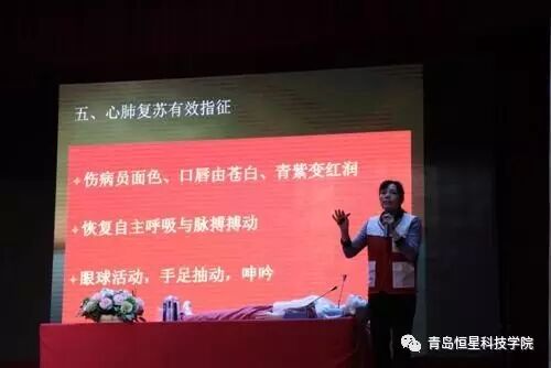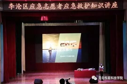 2016年12月13日下午4:00,李沧区应急志愿者应急救护知识讲座在青岛恒星科技学院国际交流中心隆重举行。本次讲座旨在加强应急志愿者应对突发事件的处理能力,科学提升应急志愿者爱心帮扶水平。特聘请毕业于青岛医学院,具有30年从医经验的青岛红十字会救护培训师荆蓉老师主讲。我校300名应急志愿者和700名学生干部共同参加。