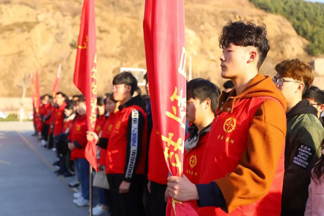 学生处与学生会领导为我校志愿者服务队进行授旗仪式。