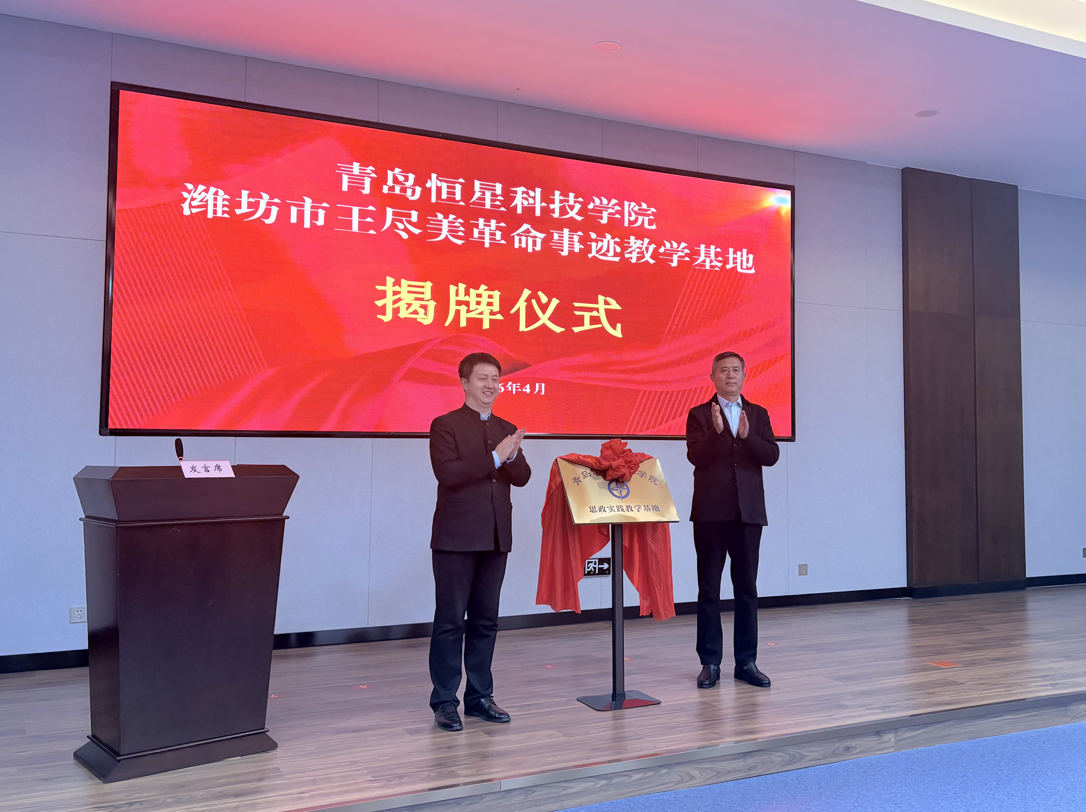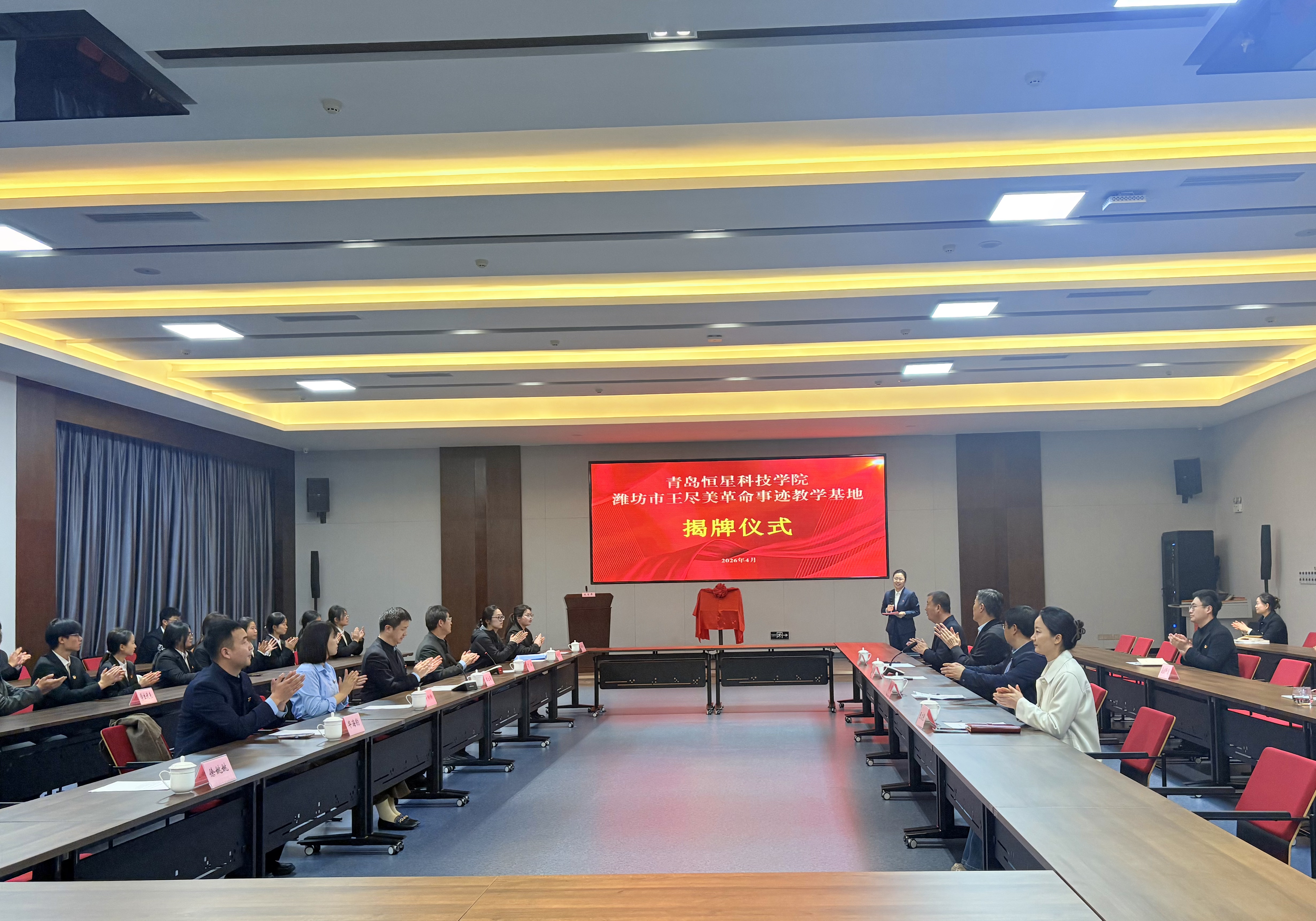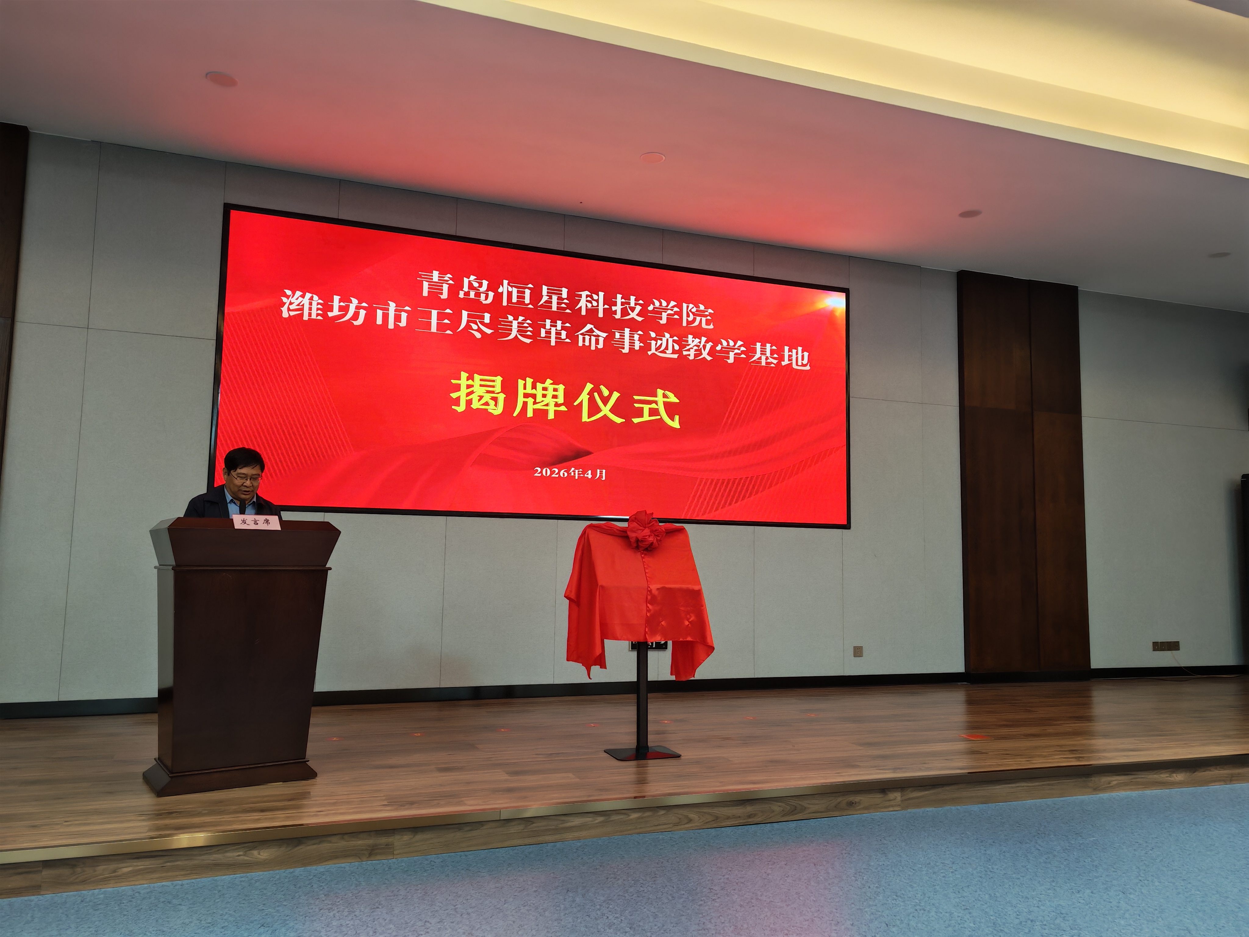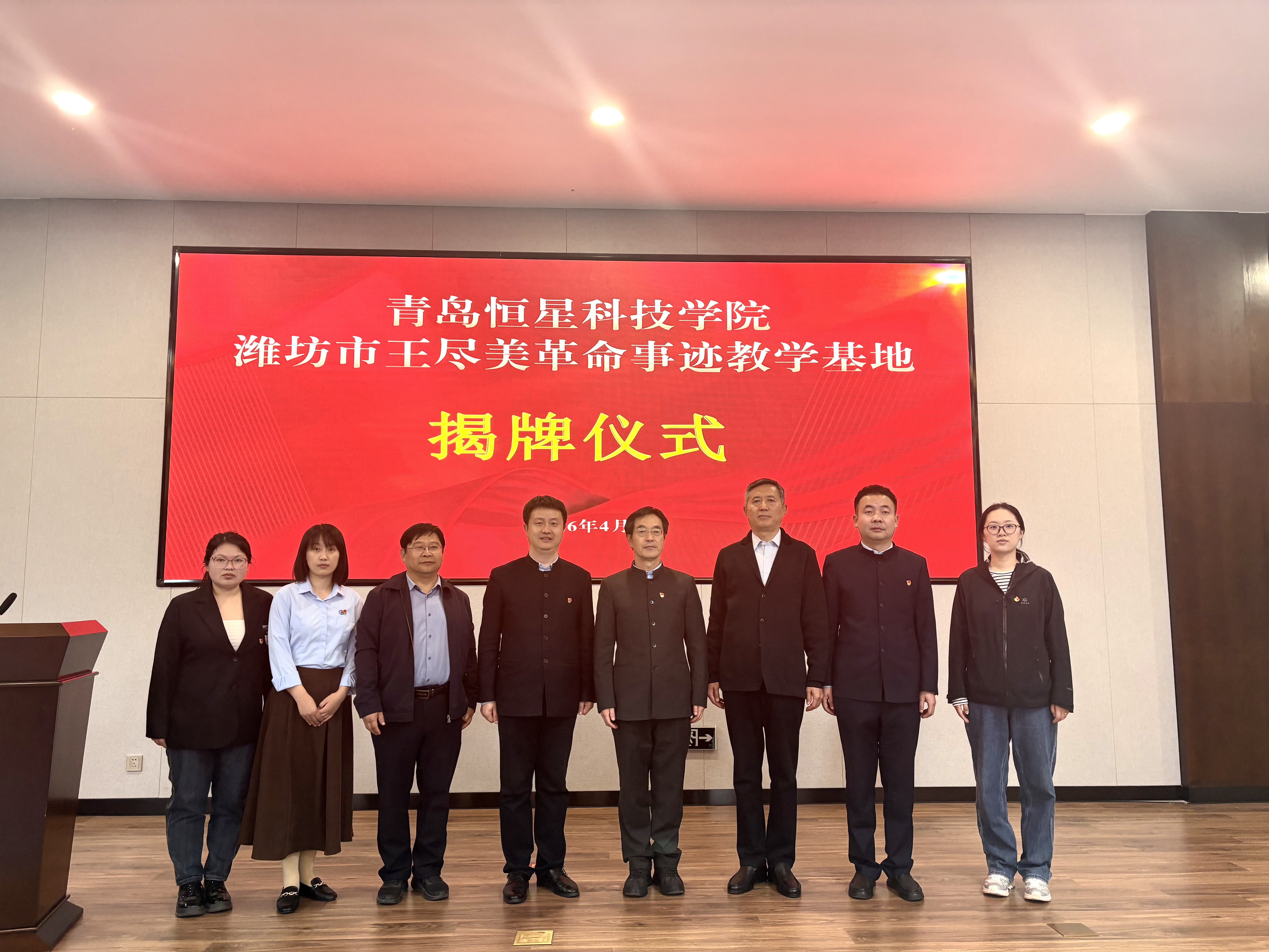 为深入推进思想政治教育工作走深走实,拓展实践育人阵地。2026年4月15日上午,青岛恒星科技学院思想政治教育基地揭牌仪式在潍坊市王尽美革命事迹教学基地圆满举行。青岛恒星科技学院党委副书记、副校长王立庭,马克思主义学院院长贺瑞,学院教师及学生代表30余人;潍坊市王尽美革命事迹教学基地党委委员、副主任毛玉东,党委委员、教务科科长李磊及教师代表共同出席仪式。
