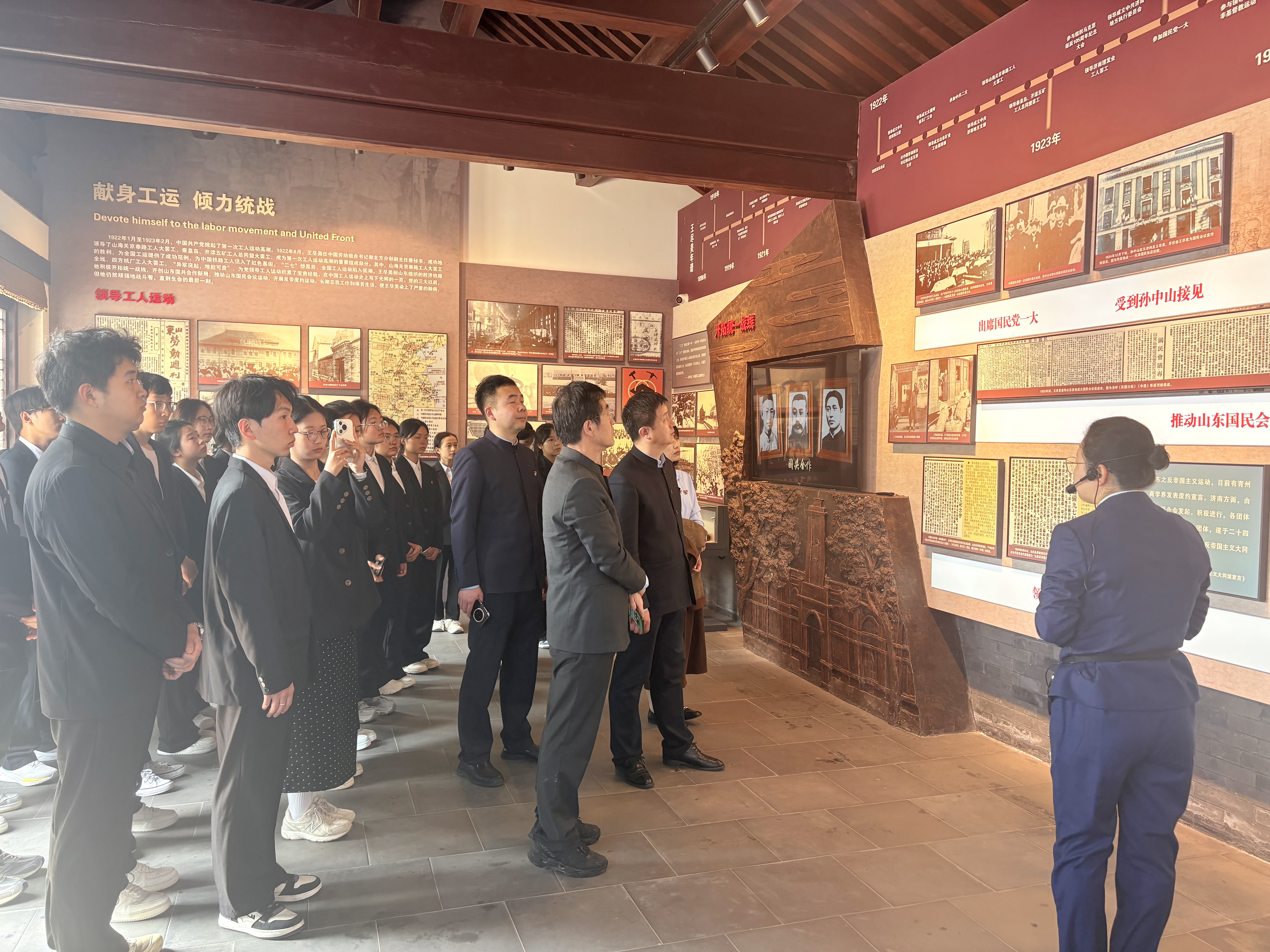 仪式前,在校地双方共同组织下,我校师生沿着红色研学路线,先后在尽美广场重温入党誓词,参观王尽美烈士纪念馆,瞻仰革命故居,聆听专题党课《初心》。在历史现场感悟革命先辈的坚定信仰与家国情怀,接受深刻的党性教育和精神洗礼,让红色基因入脑入心。