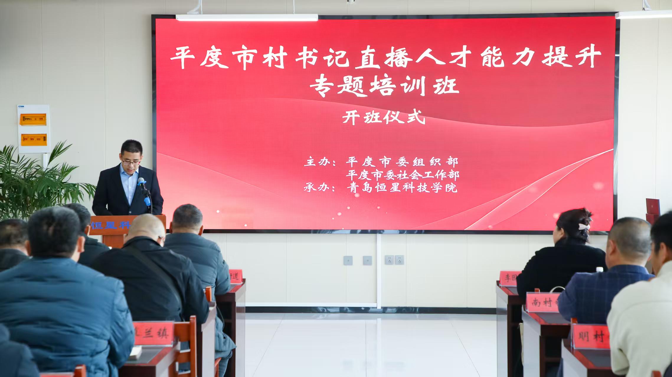 12月17日下午,由平度市委组织部、市委社会工作部主办、青岛恒星科技学院承办的“平度市直播电商产业链对接会暨村书记直播电商能力提升专题培训班”在恒星科学城举办。