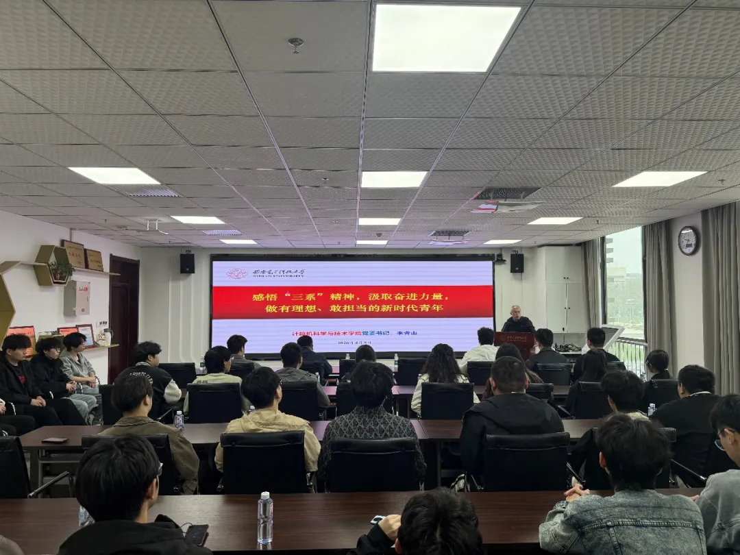 首场专家报告《赓续红色西电血脉,传承计科“三系”精神》开讲。李青山教授深情讲述了西电从无到有、攻坚克难的奋斗历程,把“艰苦奋斗、自强不息、求真务实、爱国为民”的精神内核娓娓道来。台下的恒星学子们认真聆听,对科技报国的责任与担当有了更深的体会。