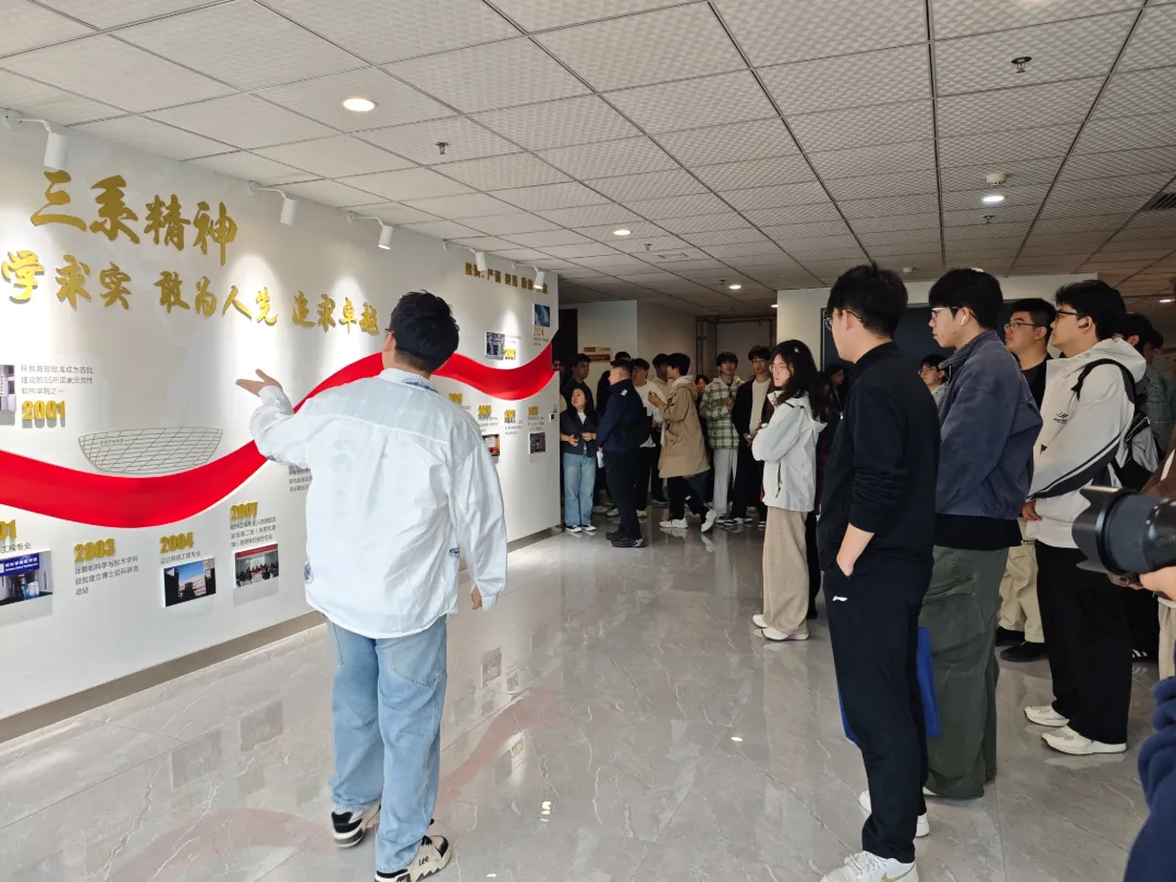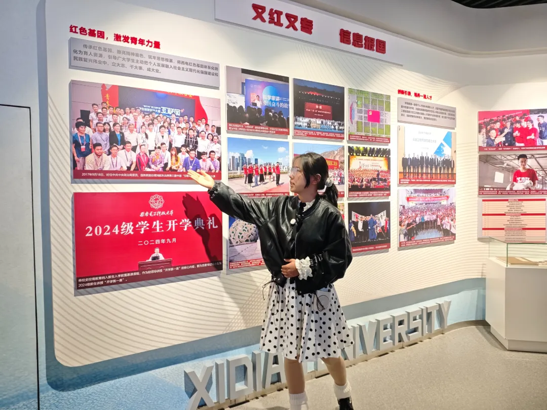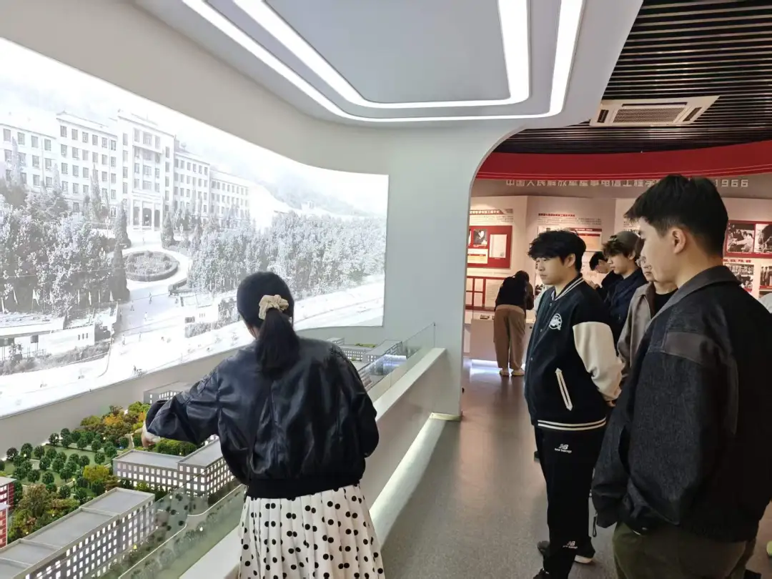 报告结束后,全体师生在西电图书馆前合影留念,定格下这一珍贵瞬间。随后大家走进校史馆,跟随讲解员的脚步,依次参观了红色历史传承、重大科研成就等展区。一张张历史照片、一件件珍贵文物,无声诉说着西电人“长征路上办学”的传奇故事,同学们深受震撼。