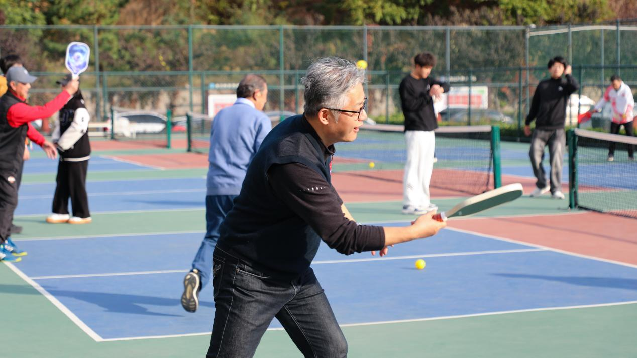 活动伊始,刘龙海副主任向大家致以节日的问候,他指出,重阳节不仅是登高望远的传统节日,更是承载敬老孝亲文化的精神纽带。“习近平总书记强调‘要让所有老年人都能老有所养、老有所依、老有所乐、老有所安’,我们引入风靡全球的匹克球运动,正是要把健康与快乐送到老教师身边,让‘夕阳红’与‘青春绿’在球场上交相辉映。”