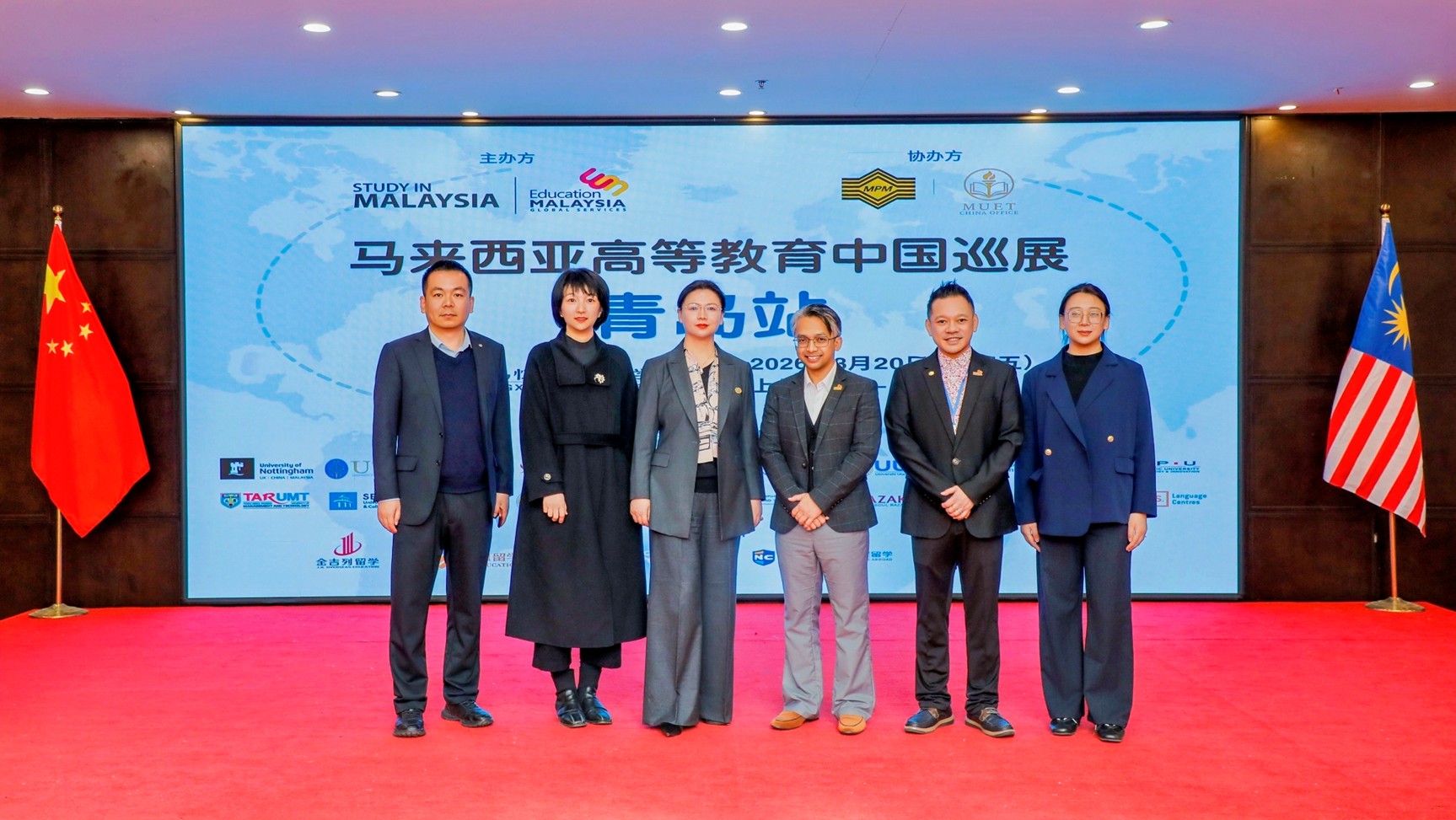 3月20日,由马来西亚教育全球服务中心(EMGS)主办,马来西亚考试理事会(MPM)、马来西亚大学教育联盟中国办公室(MUET)协办,青岛恒星科技学院承办的“2026马来西亚高等教育中国巡展青岛站”在恒星大酒店隆重开幕。这是本次马来西亚高等教育中国巡展的首站活动,马来西亚EMGS多位核心高管、22所马来西亚优质高校的校领导及代表齐聚青岛,共话中马高等教育合作与人才培养,为两地教育双向交流搭建起高效对接的桥梁。