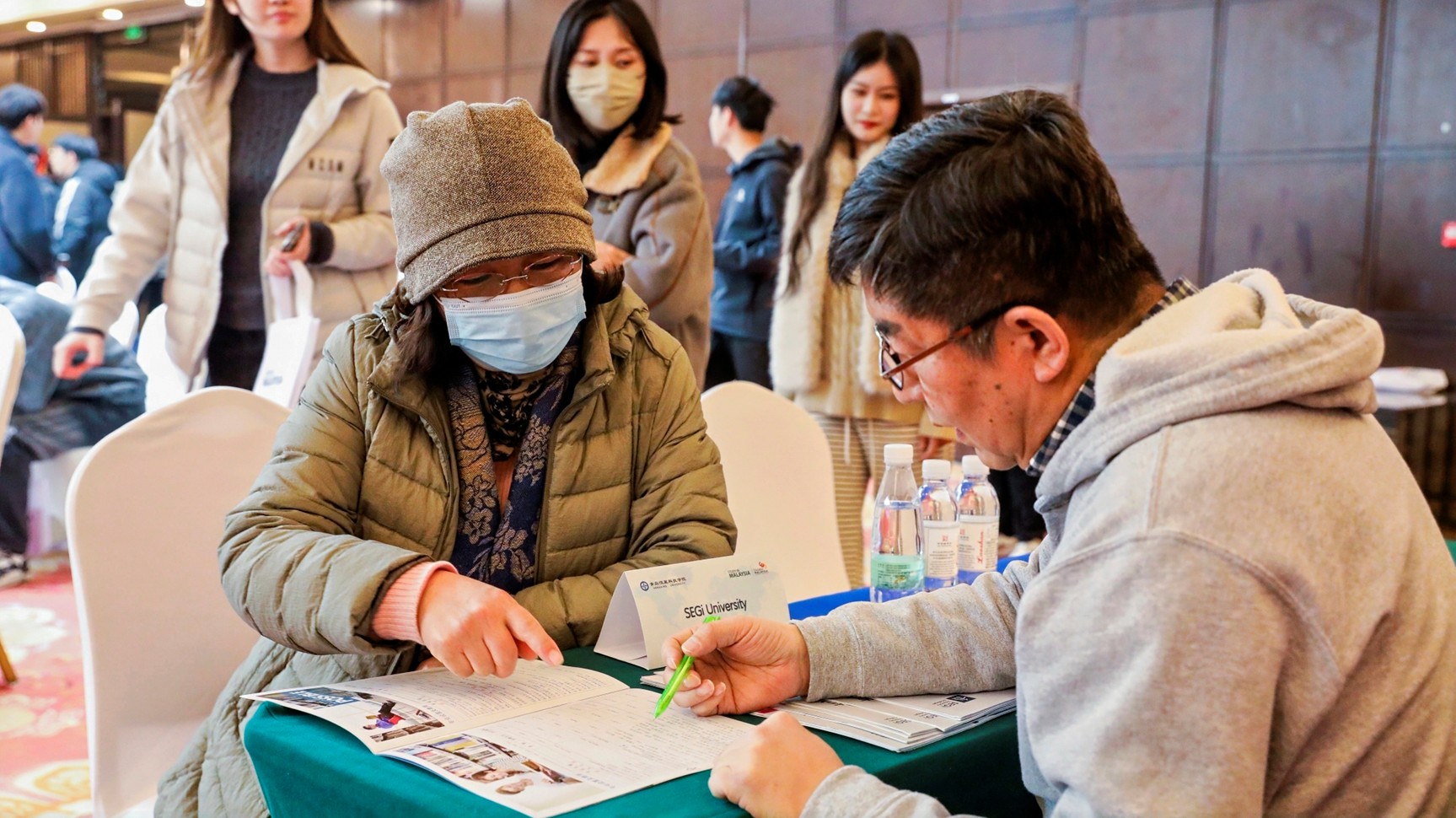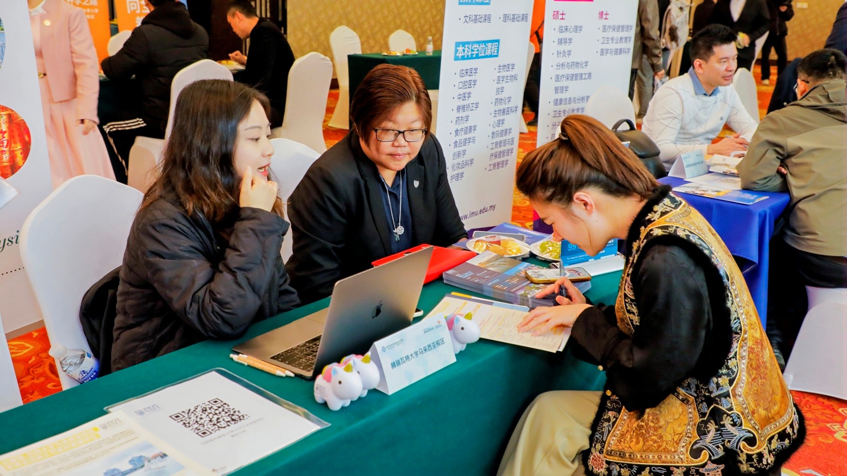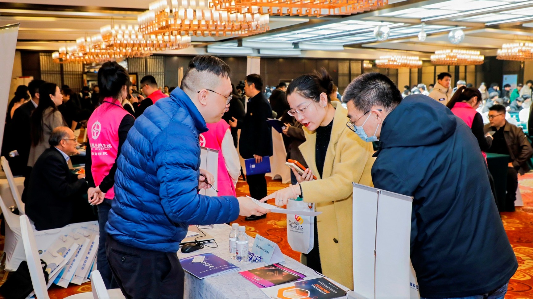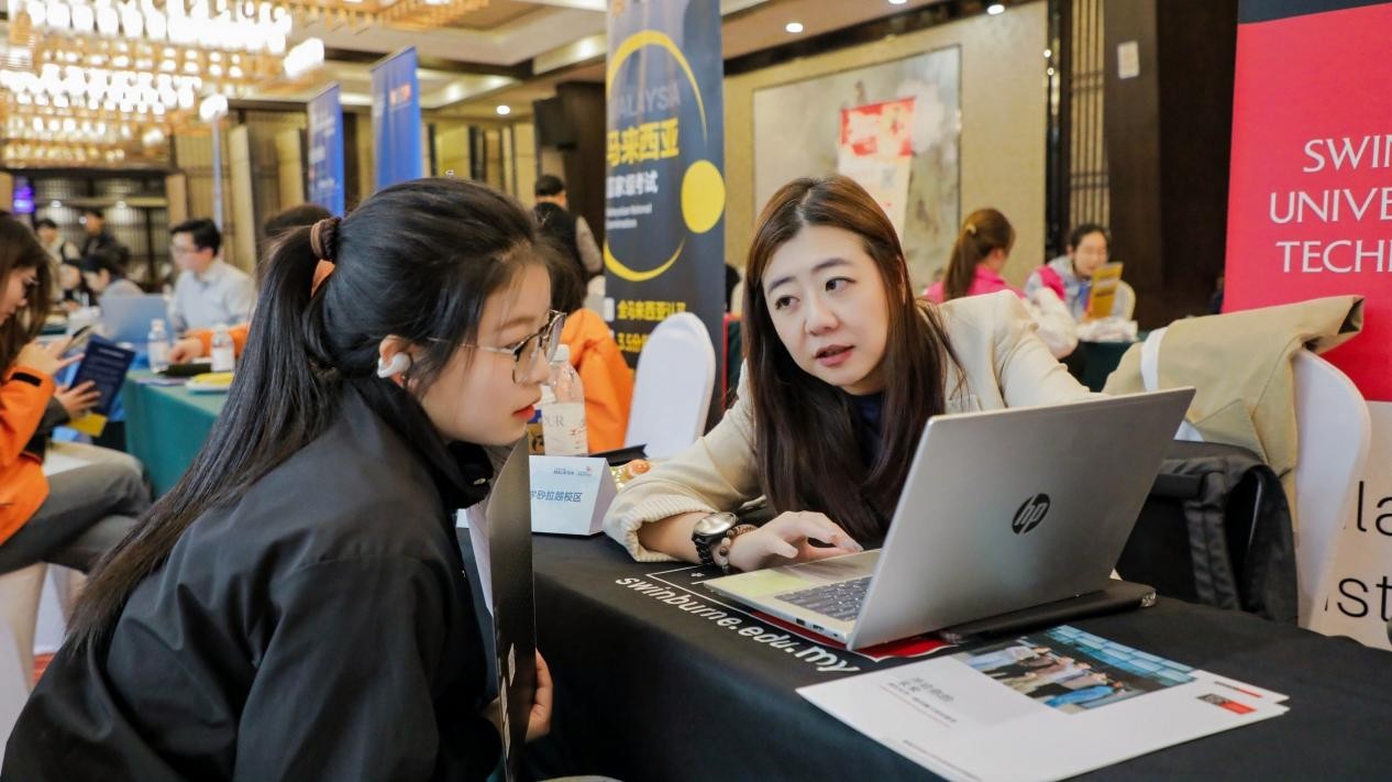 随后,留学咨询展会正式开启。马来西亚国油科技大学、诺丁汉大学马来西亚校区、南安普顿大学马来西亚校区、马来西亚双德科技大学、泰莱大学、吉隆坡科技大学等22所参展高校设立展位,各校代表与现场师生面对面交流,详细解答专业设置、升学申请、学分互认、就业发展等方面的问题,现场咨询氛围热烈。