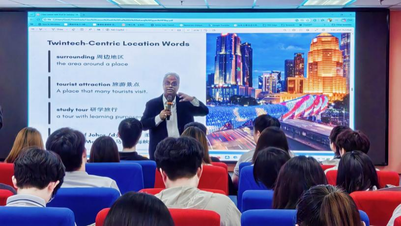 在Prof. Selvaraj的课堂上,学员们以双德科技大学为中心,用英语绘制周边地图,标注学校位置、周边大学、所在州属及重要旅游景点。这项任务不仅锻炼了他们的空间思维能力,也为接下来的实地参访与文化考察奠定了认知基础。