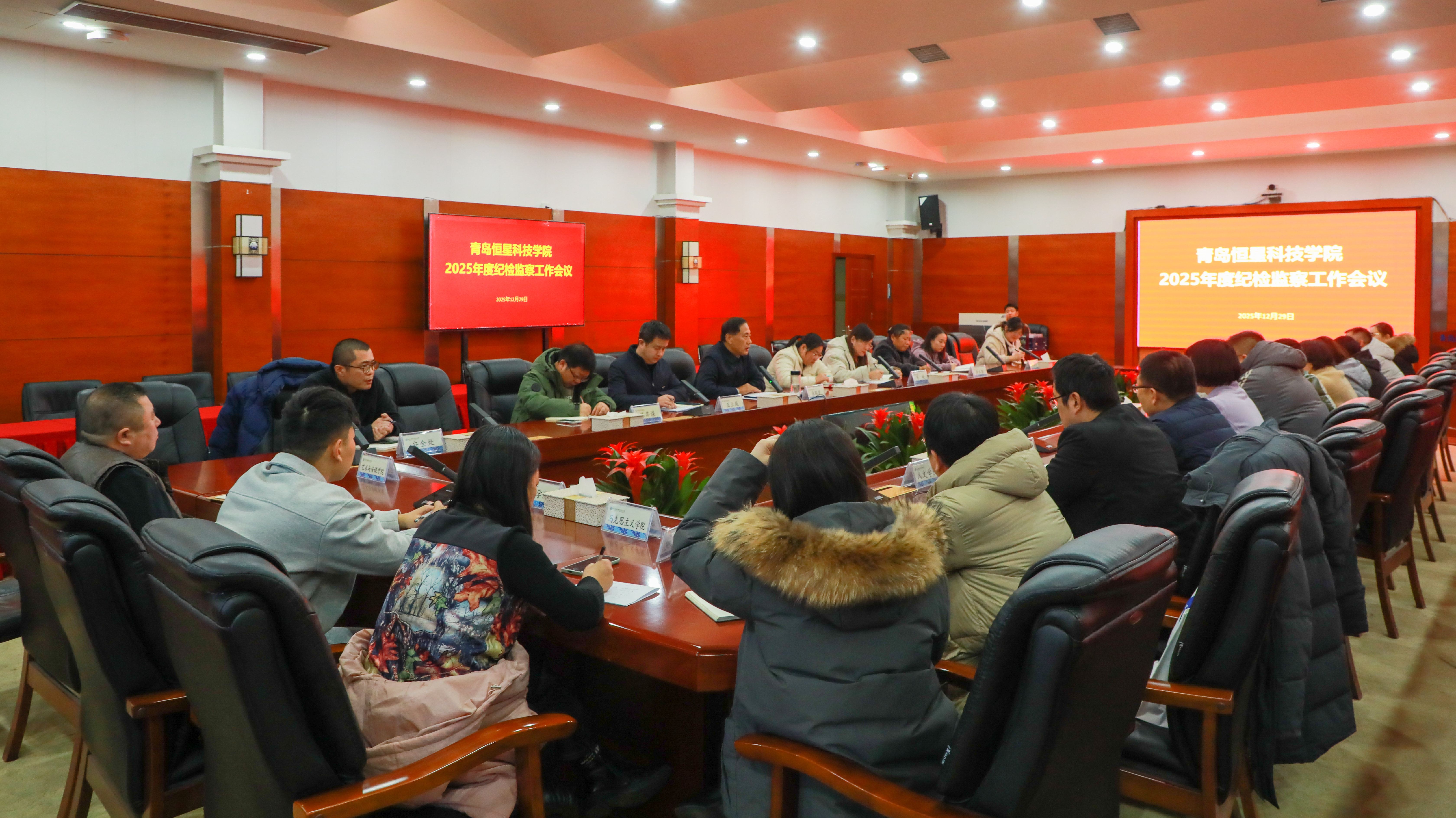 为深入推进全面从严治党向纵深发展,明确纪检监察工作方向与重点,12月29日下午16时,学校2025年度纪检监察工作会议在图书馆七楼第二会议室召开。党委书记张殿臣,党委副书记、副校长王立庭,副校长陈其谋,纪委书记李云霞出席会议,全体纪委委员、各党总支(直属党支部)纪检监察委员参会,会议由李云霞书记主持。
