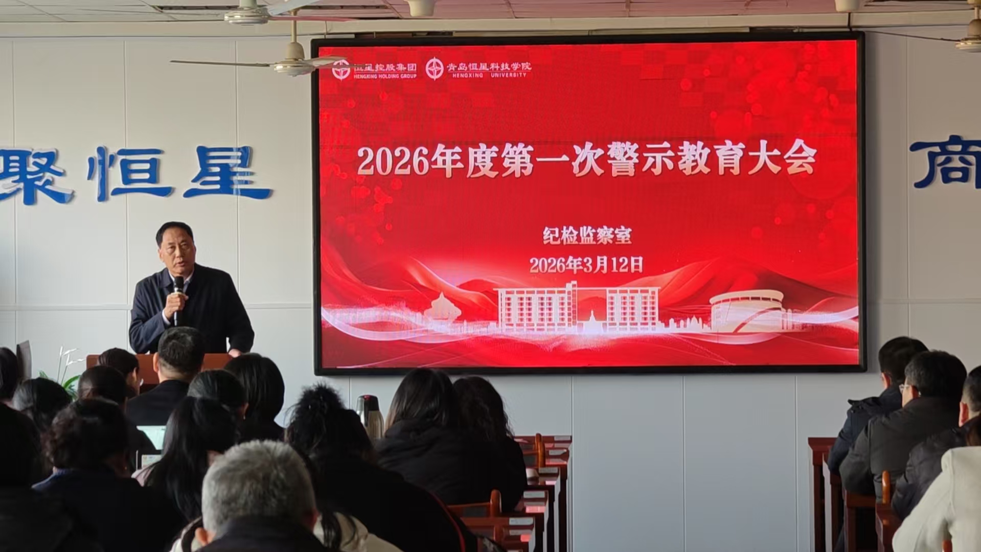 为深入贯彻落实全面从严治党要求,持续加强学校党风廉政建设,筑牢全校党员干部拒腐防变思想防线,3月12日下午,学校在图书馆415会议室召开2026年度第一次教育警示大会。党委书记张殿臣,集团及学校领导,执行总裁、策划总裁,各职能处室负责人、各学院院务会成员,学校党委委员、纪委委员,各党总支(直属党支部)书记及纪检监察委员参会,会议由纪委书记李云霞主持。